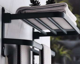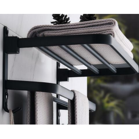 尚美德 卫生间置物架毛巾架铝合金免打孔厕所洗手间收纳架可折叠带挂钩浴巾架 浴室置物架 黑色浴巾架